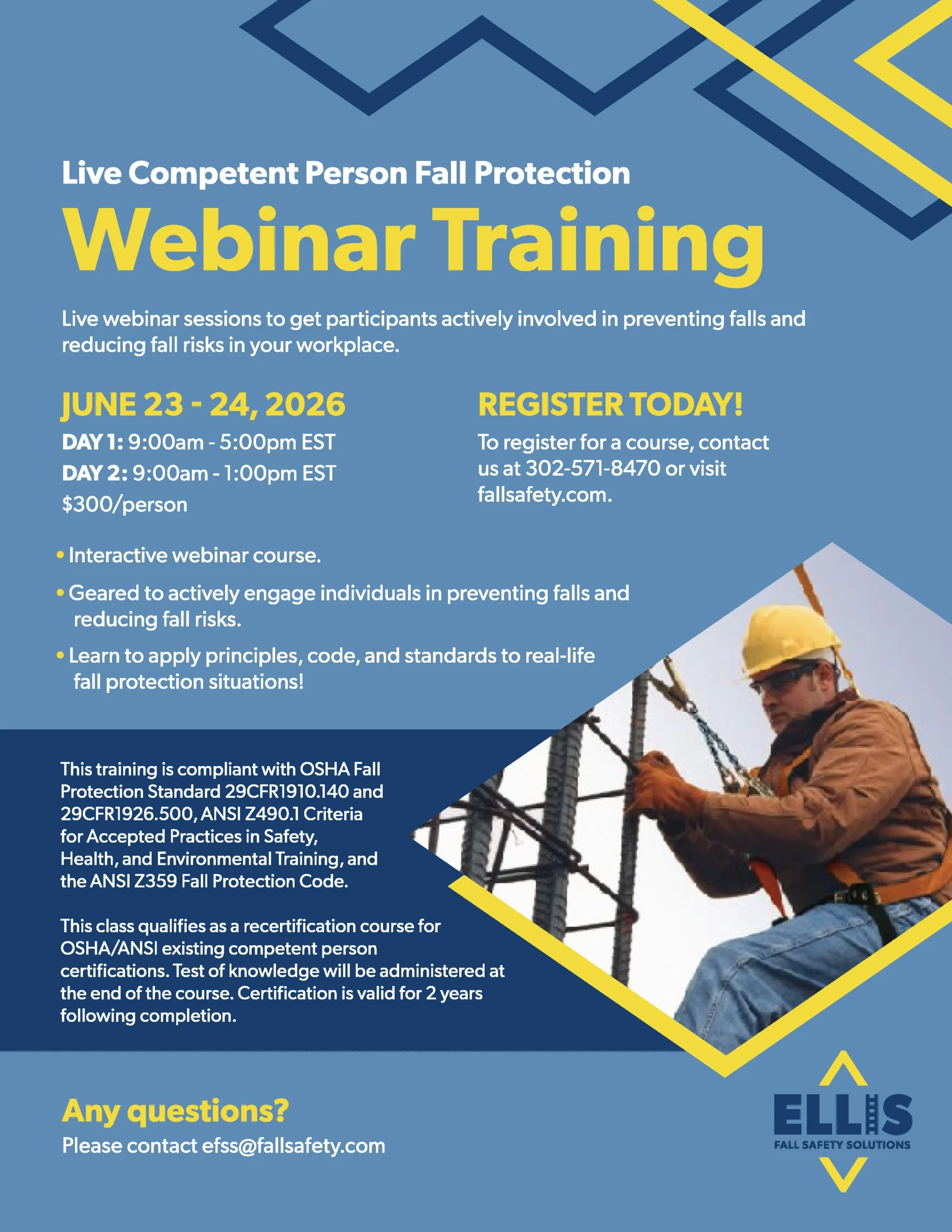We offer a comprehensive range of fall protection training services, including Authorized Person, Competent Person, and Qualified Person training, as well as EM 385-1-1 USACE-compliant Competent Person Fall Protection courses.